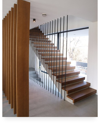 Учет особенностей дома. При монтаже учитываем усадку деревянных строений и используем специальные технологии, чтобы лестница сохраняла форму долгие годы.